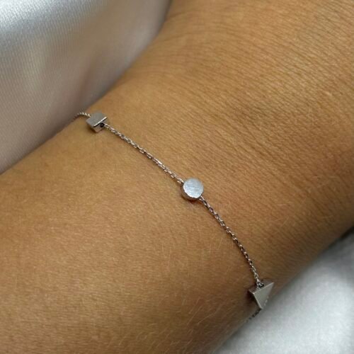 Balto aukso apyrankė su trikampiu, kvadratu ir apskritimu 17-19 cm